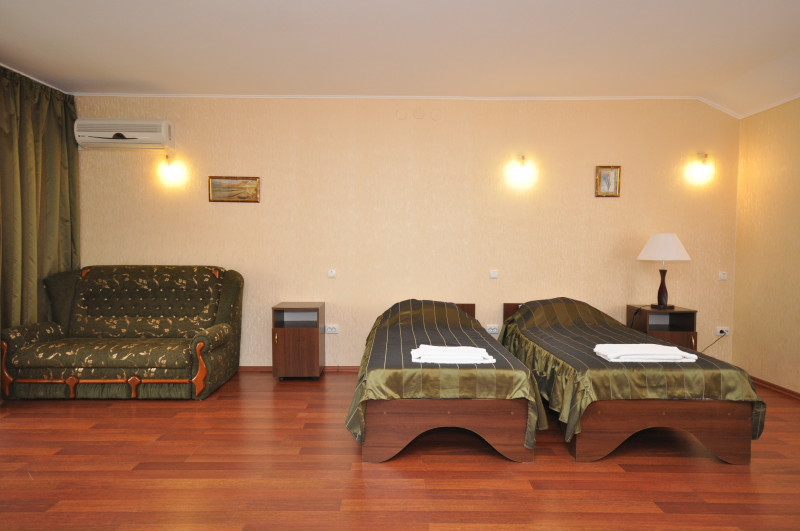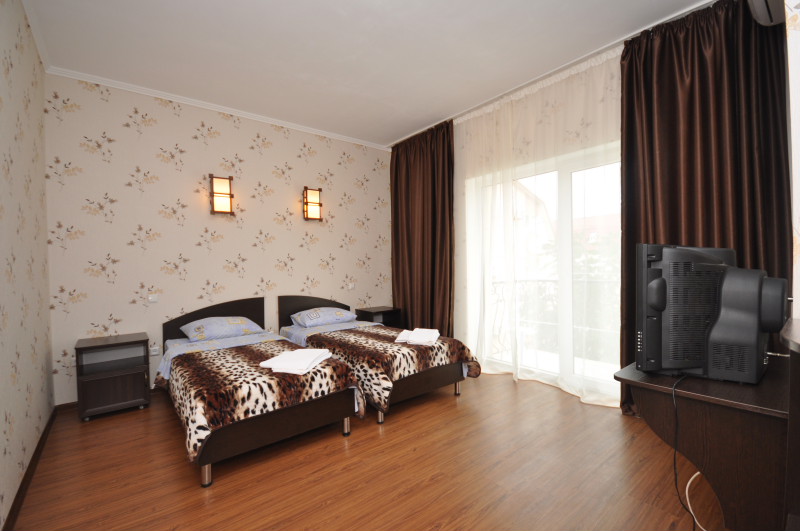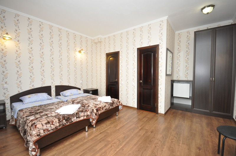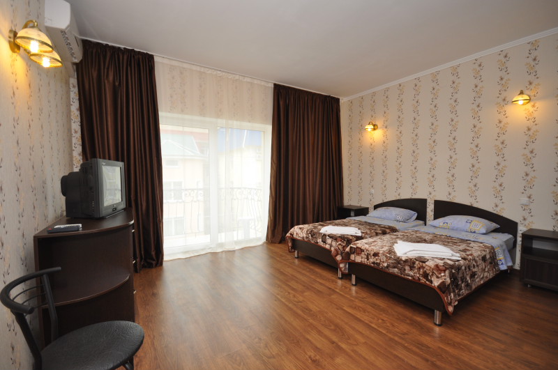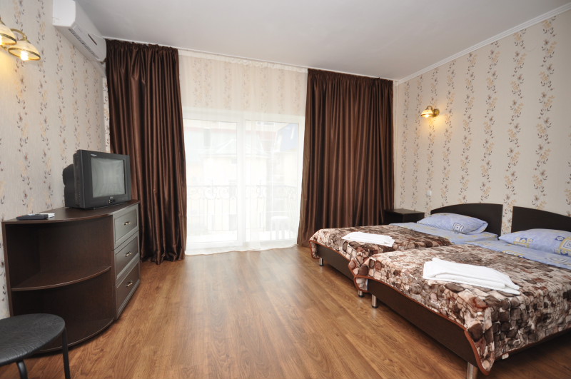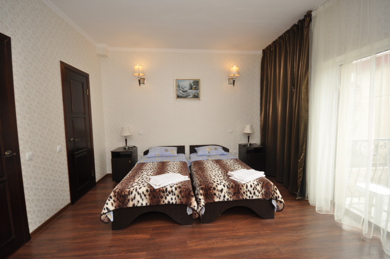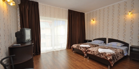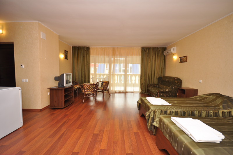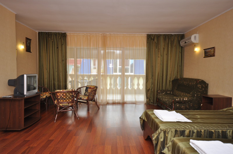 Для наших гостей мы предлагаем следующие категории номеров: двухкомнатные номера, средней площадью 45 кв. м., с балконом и всеми удобствами; 2-х и 3-х местные номера, площадью 20 кв.м.; для семейного отдыха в Николаевке прекрасно подойдет "семейный" номер, площадь номера - 35 кв.м + большая лоджия для комфортного времяпрепровождения. На территории коттежда расположены беседки, детская площадка и бассейн.