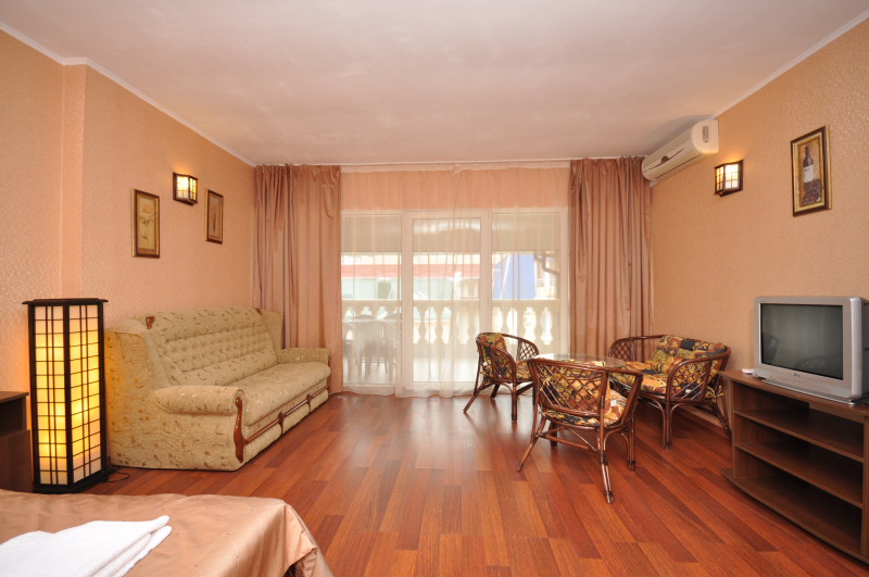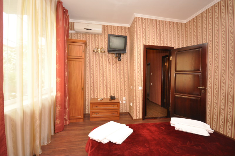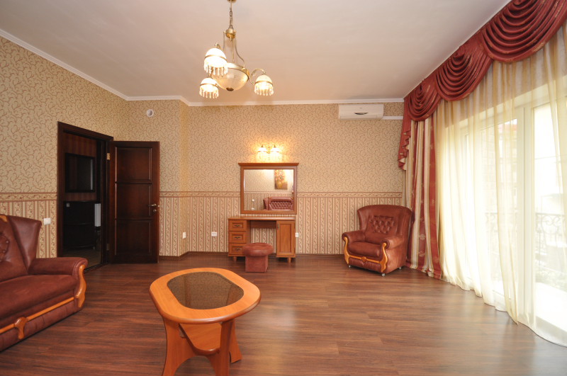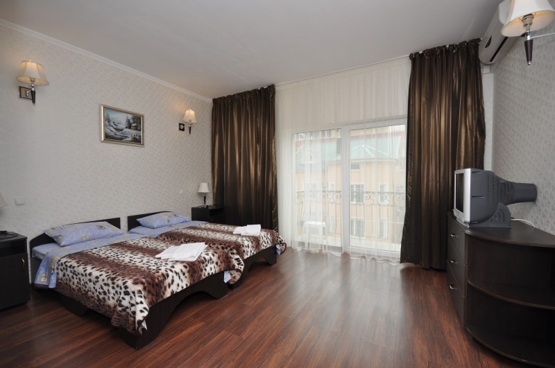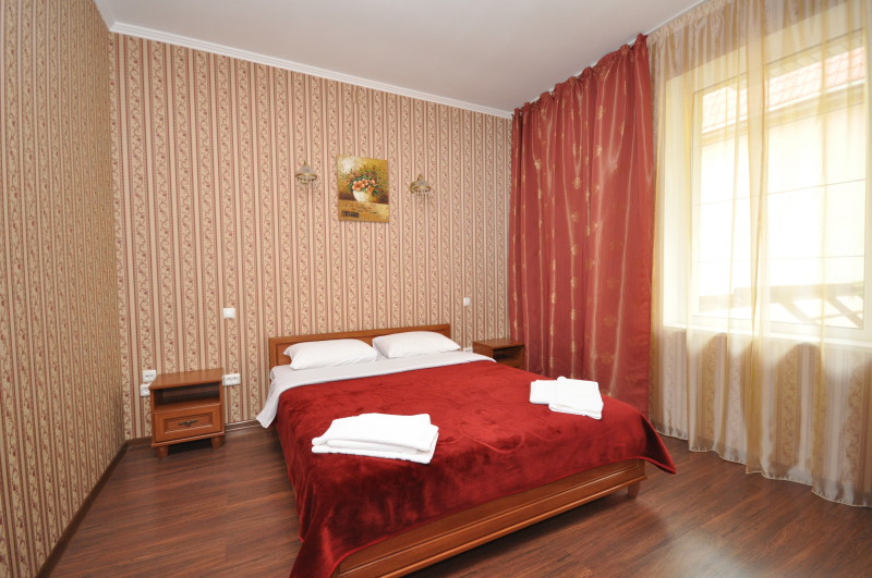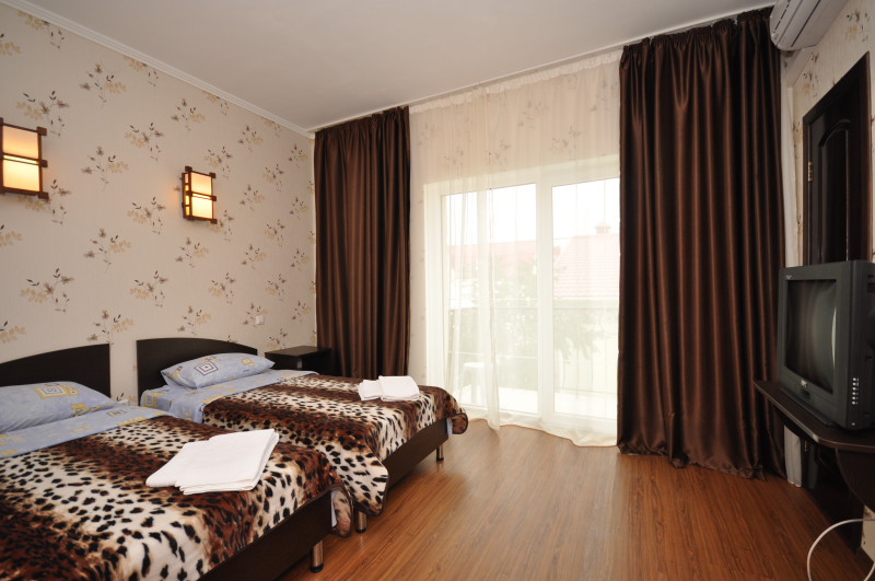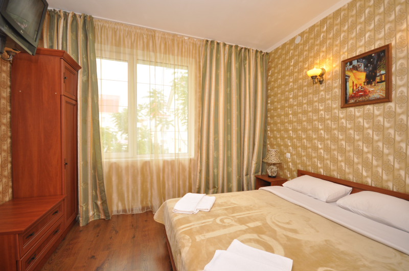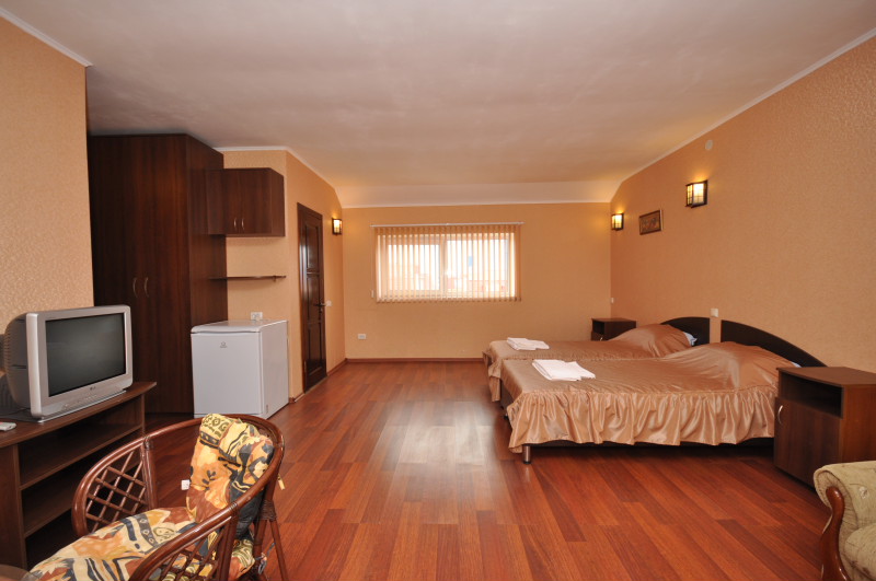 Для наших гостей мы предлагаем следующие категории номеров: двухкомнатные номера, средней площадью 45 кв. м., с балконом и всеми удобствами; 2-х и 3-х местные номера, площадью 20 кв.м.; для семейного отдыха в Николаевке прекрасно подойдет "семейный" номер, площадь номера - 35 кв.м + большая лоджия для комфортного времяпрепровождения. На территории коттежда расположены беседки, детская площадка и бассейн.